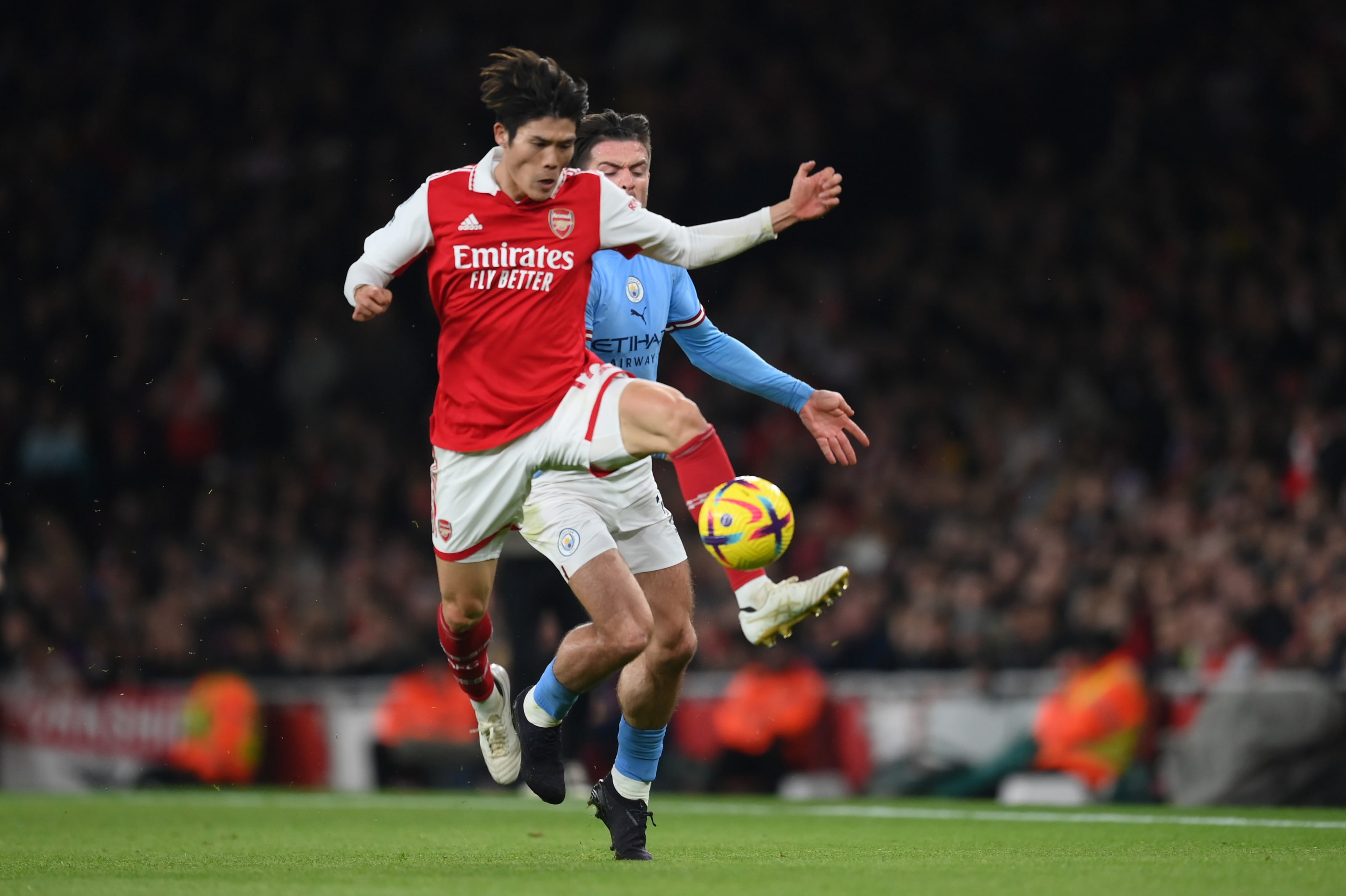 Manchester City's Norwegian striker Erling Haaland celebrates after scoring his team third goal during the English Premier League football match between Arsenal and Manchester City at the Emirates Stadium in London on February 15, 2023. - - RESTRICTED TO EDITORIAL USE. No use with unauthorized audio, video, data, fixture lists, club/league logos or 'live' services. Online in-match use limited to 120 images. An additional 40 images may be used in extra time. No video emulation. Social media in-match use limited to 120 images. An additional 40 images may be used in extra time. No use in betting publications, games or single club/league/player publications. (Photo by Glyn KIRK / AFP) / RESTRICTED TO EDITORIAL USE. No use with unauthorized audio, video, data, fixture lists, club/league logos or 'live' services. Online in-match use limited to 120 images. An additional 40 images may be used in extra time. No video emulation. Social media in-match use limited to 120 images. An additional 40 images may be used in extra time. No use in betting publications, games or single club/league/player publications. / RESTRICTED TO EDITORIAL USE. No use with unauthorized audio, video, data, fixture lists, club/league logos or 'live' services. Online in-match use limited to 120 images. An additional 40 images may be used in extra time. No video emulation. Social media in-match use limited to 120 images. An additional 40 images may be used in extra time. No use in betting publications, games or single club/league/player publications. (Photo by GLYN KIRK/AFP via Getty Images)