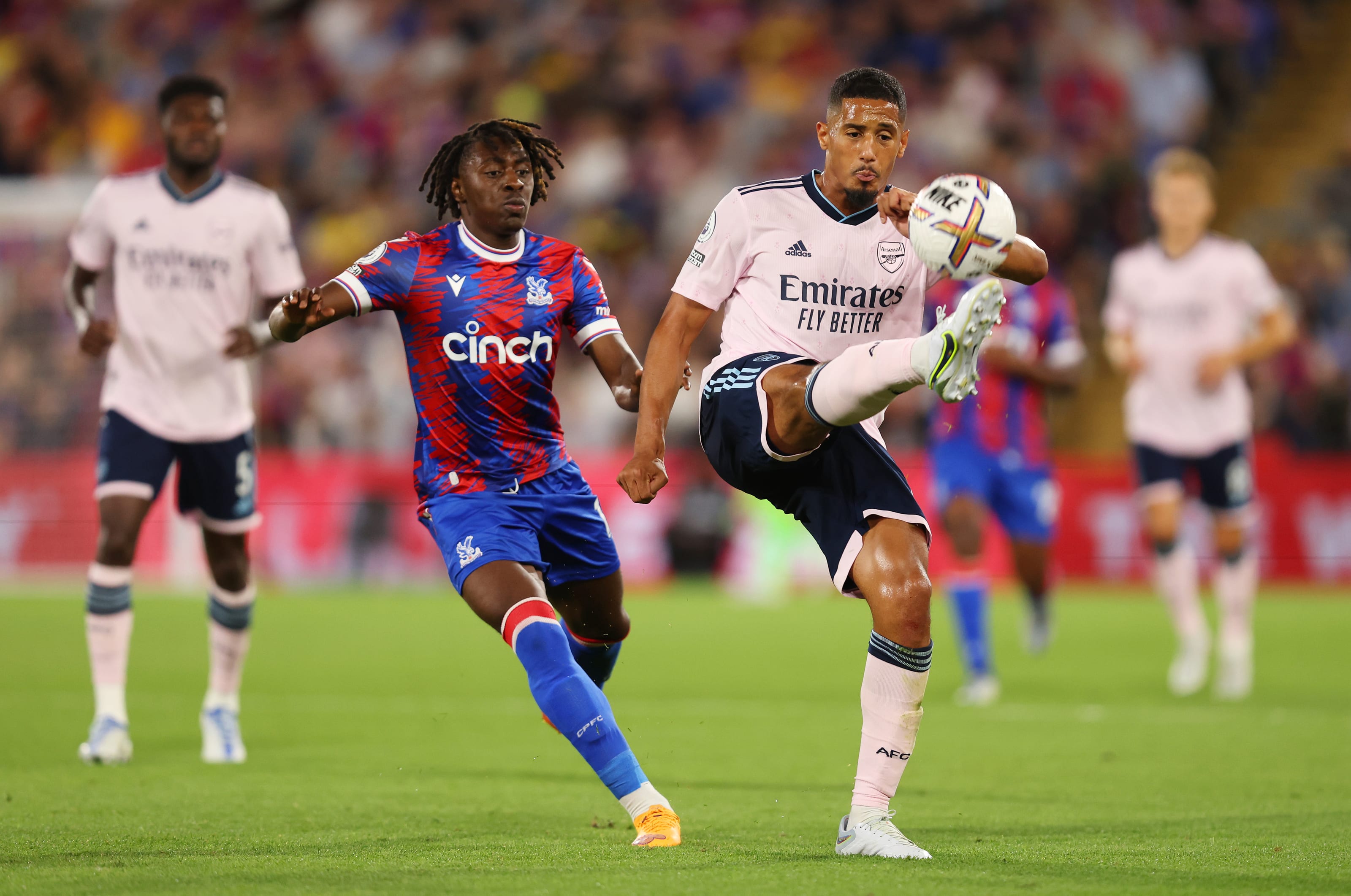 Arsenal's Brazilian midfielder Gabriel Martinelli (L) celebrates with teammates after scoring the opening goal in the English Premier League football match between Crystal Palace and Arsenal at Selhurst Park in south London on August 5, 2022. - RESTRICTED TO EDITORIAL USE. No use with unauthorized audio, video, data, fixture lists, club/league logos or 'live' services. Online in-match use limited to 120 images. An additional 40 images may be used in extra time. No video emulation. Social media in-match use limited to 120 images. An additional 40 images may be used in extra time. No use in betting publications, games or single club/league/player publications. (Photo by JUSTIN TALLIS / AFP) / RESTRICTED TO EDITORIAL USE. No use with unauthorized audio, video, data, fixture lists, club/league logos or 'live' services. Online in-match use limited to 120 images. An additional 40 images may be used in extra time. No video emulation. Social media in-match use limited to 120 images. An additional 40 images may be used in extra time. No use in betting publications, games or single club/league/player publications. / RESTRICTED TO EDITORIAL USE. No use with unauthorized audio, video, data, fixture lists, club/league logos or 'live' services. Online in-match use limited to 120 images. An additional 40 images may be used in extra time. No video emulation. Social media in-match use limited to 120 images. An additional 40 images may be used in extra time. No use in betting publications, games or single club/league/player publications. (Photo by JUSTIN TALLIS/AFP via Getty Images)