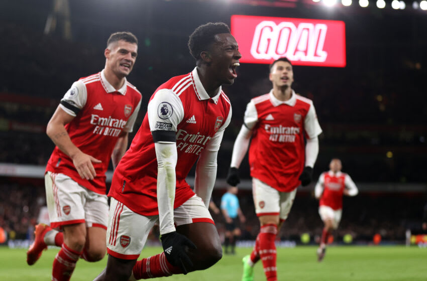 Three second-half goals from Bukayo Saka, Gabriel Martinelli and Eddie Nketiah cancelled out Said Benrahma’s first-half penalty to extend the Gunners’ lead at the top of the Premier League table to seven points.