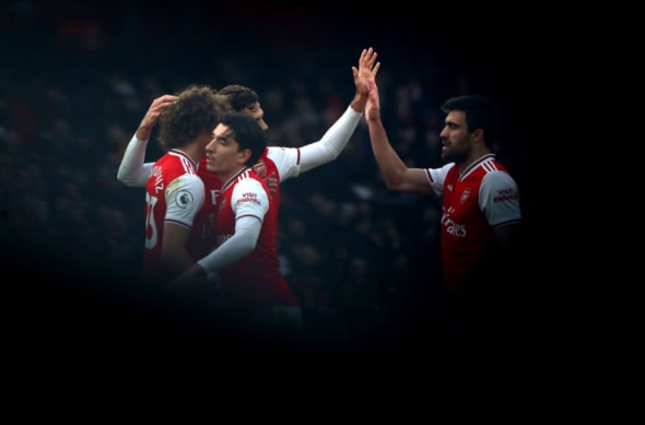 LONDON, ENGLAND – MARCH 07: Arsenal celebrate after winning the Premier League match between Arsenal FC and West Ham United at Emirates Stadium on March 07, 2020 in London, United Kingdom. (Photo by Chloe Knott – Danehouse/Getty Images)