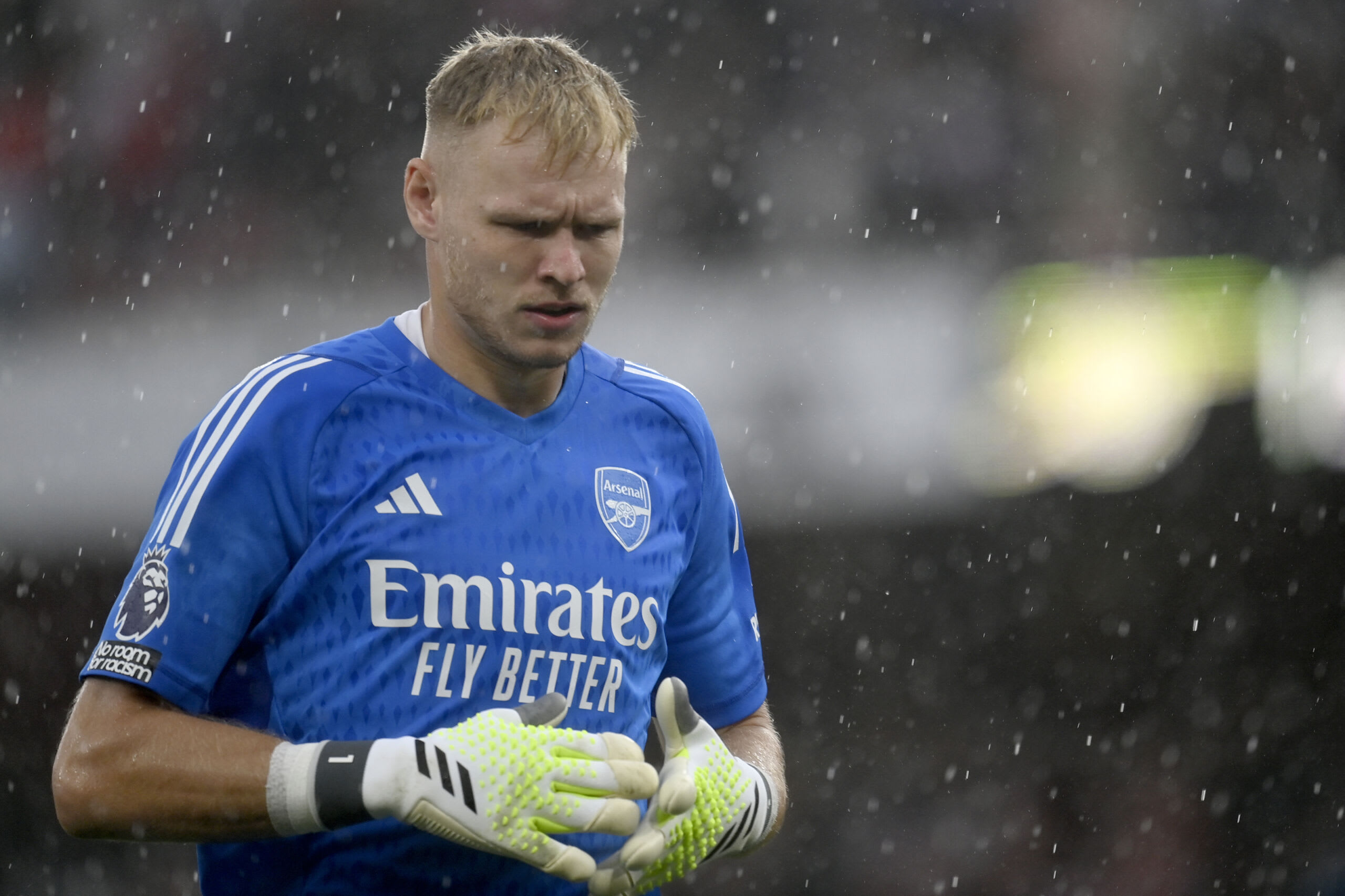 Ramsdale didn’t cover himself in glory for Fulham’s early opener. (Photo by Neal Simpson/Sportsphoto/Allstar via Getty Images)