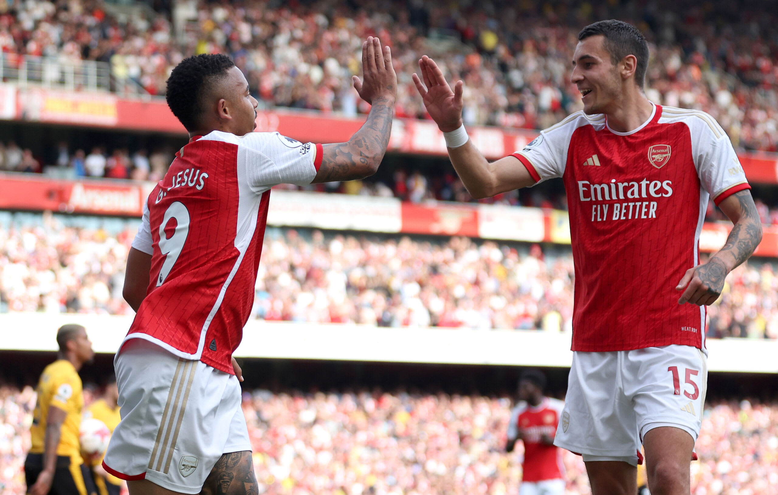 Bukayo Saka added a third for the hosts before the break with a delightful finish before Gabriel Jesus, who’d superbly teed up Xhaka for the opener, added a fourth before the hour. Jakub Kiwior then benefitted from a Jose Sa error to score his first Arsenal goal and the Gunners’ fifth of the afternoon.