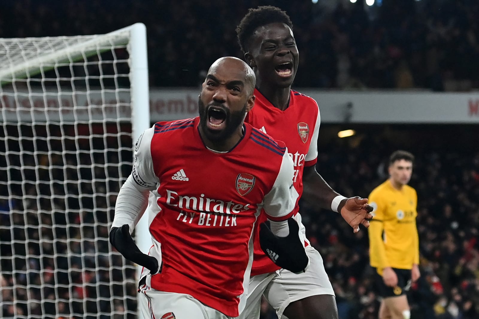 Alexandre Lacazette sent the Emirates into a state of delirium with his late winner against Wolves. (Photo by GLYN KIRK/AFP via Getty Images)