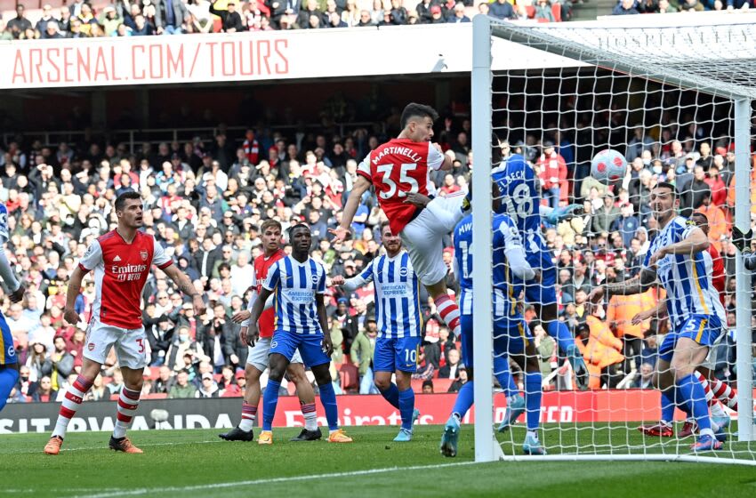 ![Arsenal's Brazilian striker Gabriel Martinelli (C) scores the equalising goal during the English Premier League football match between Arsenal and Brighton and Hove Albion at the Emirates Stadium in London on April 9, 2022. - - RESTRICTED TO EDITORIAL USE. No use with unauthorized audio, video, data, fixture lists, club/league logos or 'live' services. Online in-match use limited to 120 images. An additional 40 images may be used in extra time. No video emulation. Social media in-match use limited to 120 images. An additional 40 images may be used in extra time. No use in betting publications, games or single club/league/player publications. (Photo by JUSTIN TALLIS / AFP) / RESTRICTED TO EDITORIAL USE. No use with unauthorized audio, video, data, fixture lists, club/league logos or 'live' services. Online in-match use limited to 120 images. An additional 40 images may be used in extra time. No video emulation. Social media in-match use limited to 120 images. An additional 40 images may be used in extra time. No use in betting publications, games or single club/league/player publications. / The erroneous mention[s] appearing in the metadata of this photo by JUSTIN TALLIS has been modified in AFP systems in the following manner: [Arsenal's Brazilian striker Gabriel Martinelli (C) scores the equalising goal, which was then disallowed following a VAR review] instead of [Arsenal's Brazilian striker Gabriel Martinelli (C) scores the equalising goal]. Please immediately remove the erroneous mention[s] from all your online services and delete it (them) from your servers. If you have been authorized by AFP to distribute it (them) to third parties, please ensure that the same actions are carried out by them. Failure to promptly comply with these instructions will entail liability on your part for any continued or post notification usage. Therefore we thank you very much for all your attention and prompt action. We are sorry for the inconvenience this notification may cause a (Photo by JUSTIN TALLIS/AFP via Getty Images)](jpg/1239863743-850x560.jpg)