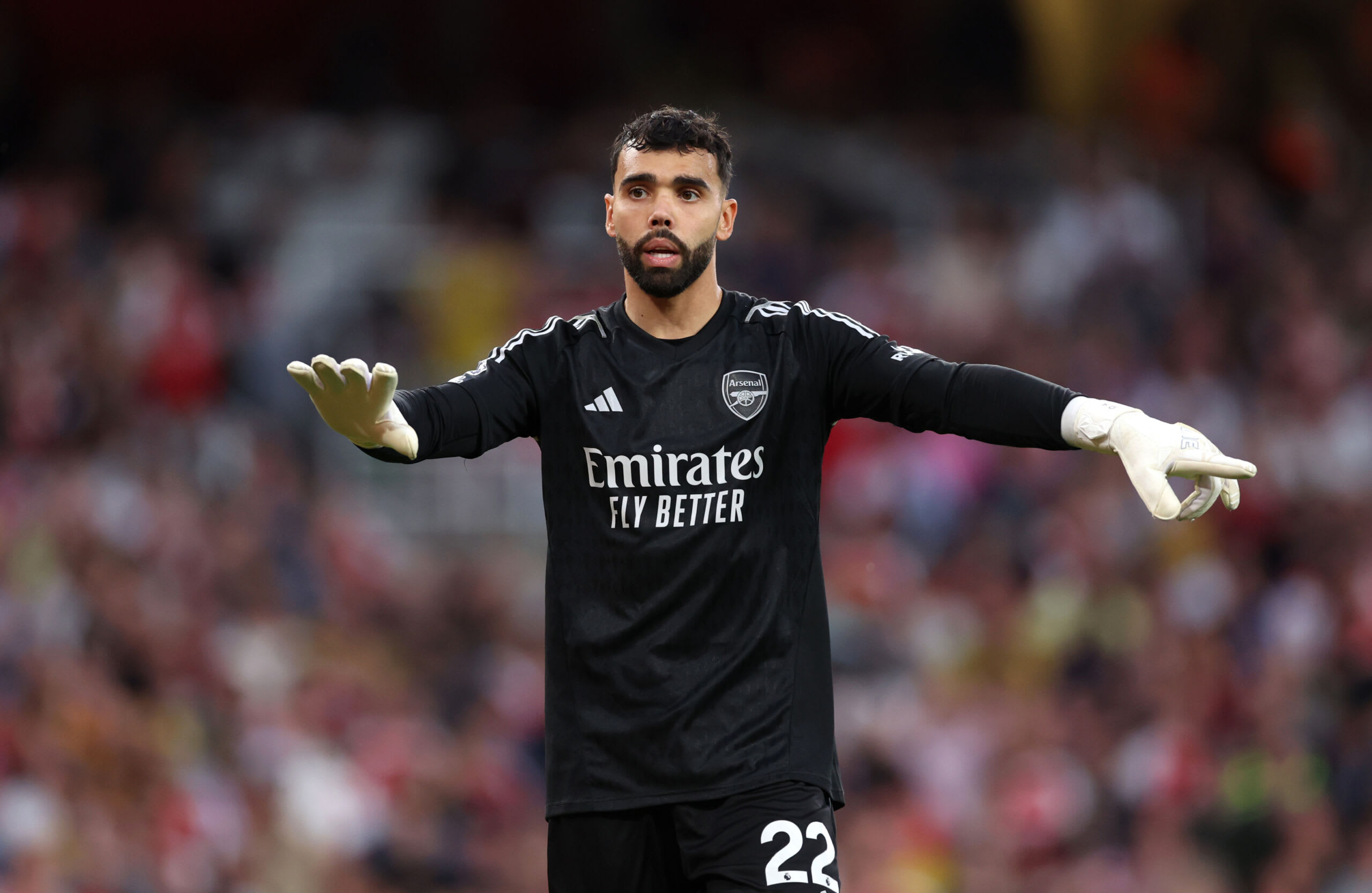 David Raya produced a nervy first half against City. (Photo by Alex Pantling/Getty Images)
